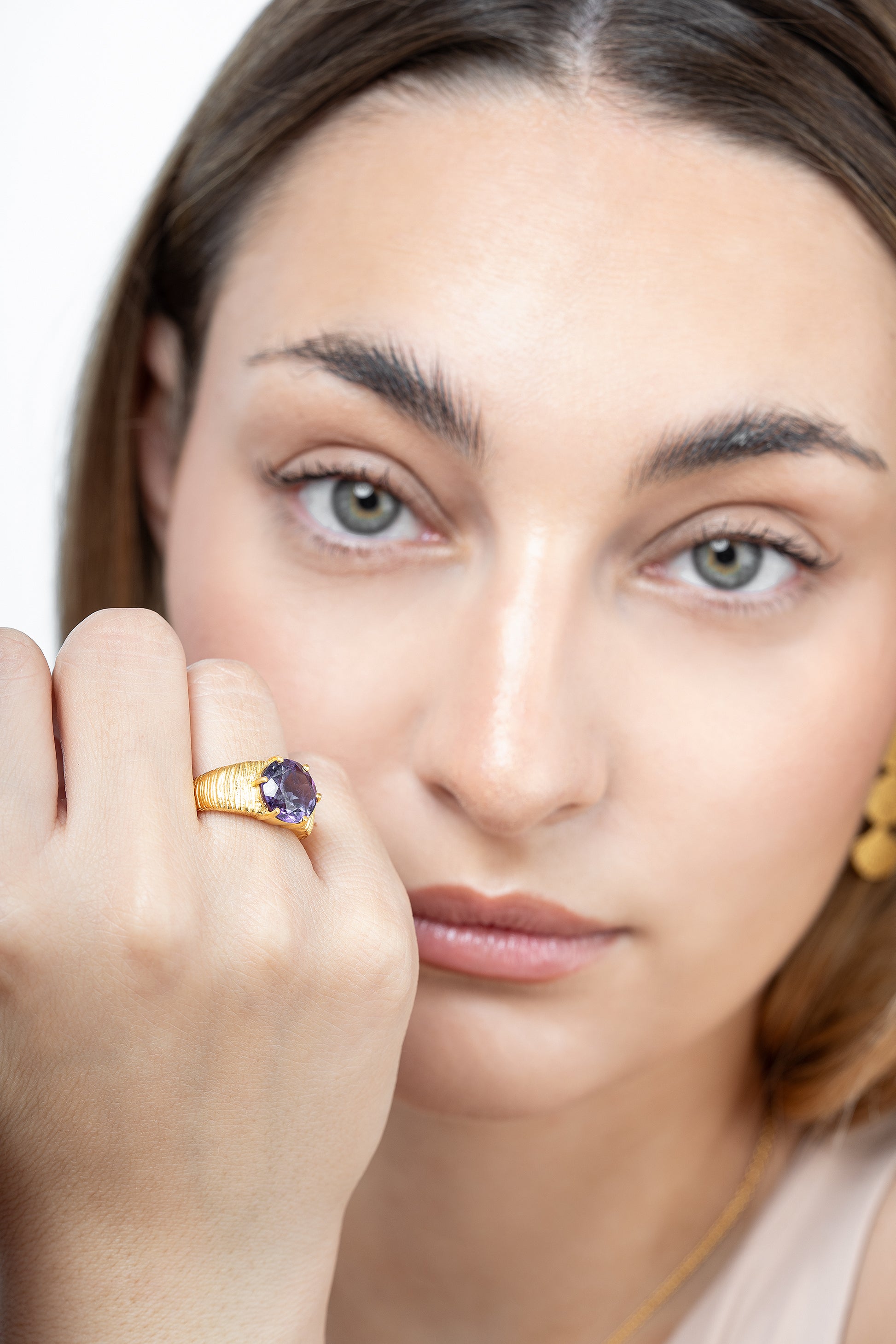 Anillo de Oro Vermeil de 18K con Amatista, piedra natural color púrpura.