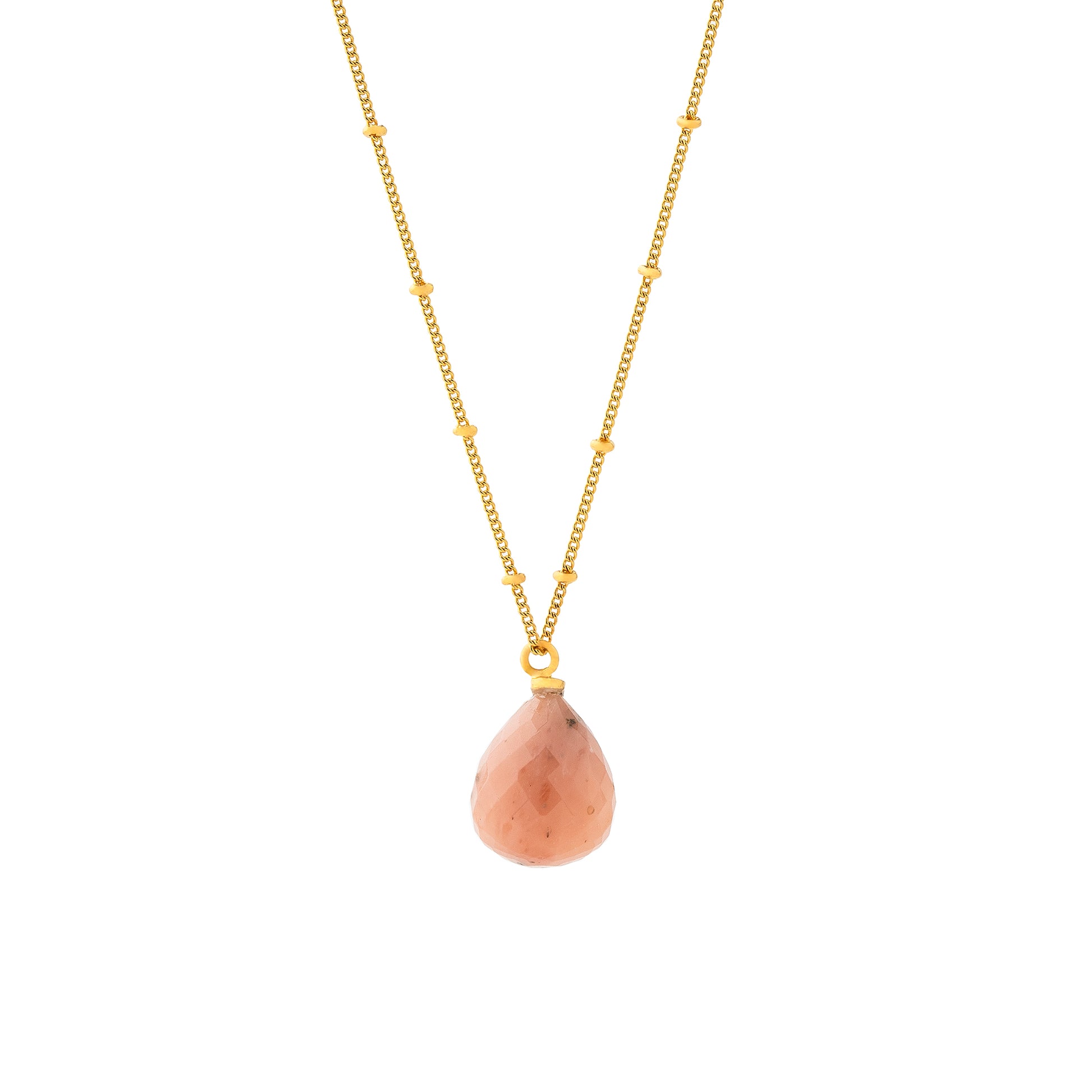 Colgante Oro Vermeil de 18k con piedra semipreciosa natural en tono rosa anaranjado tallada a mano.