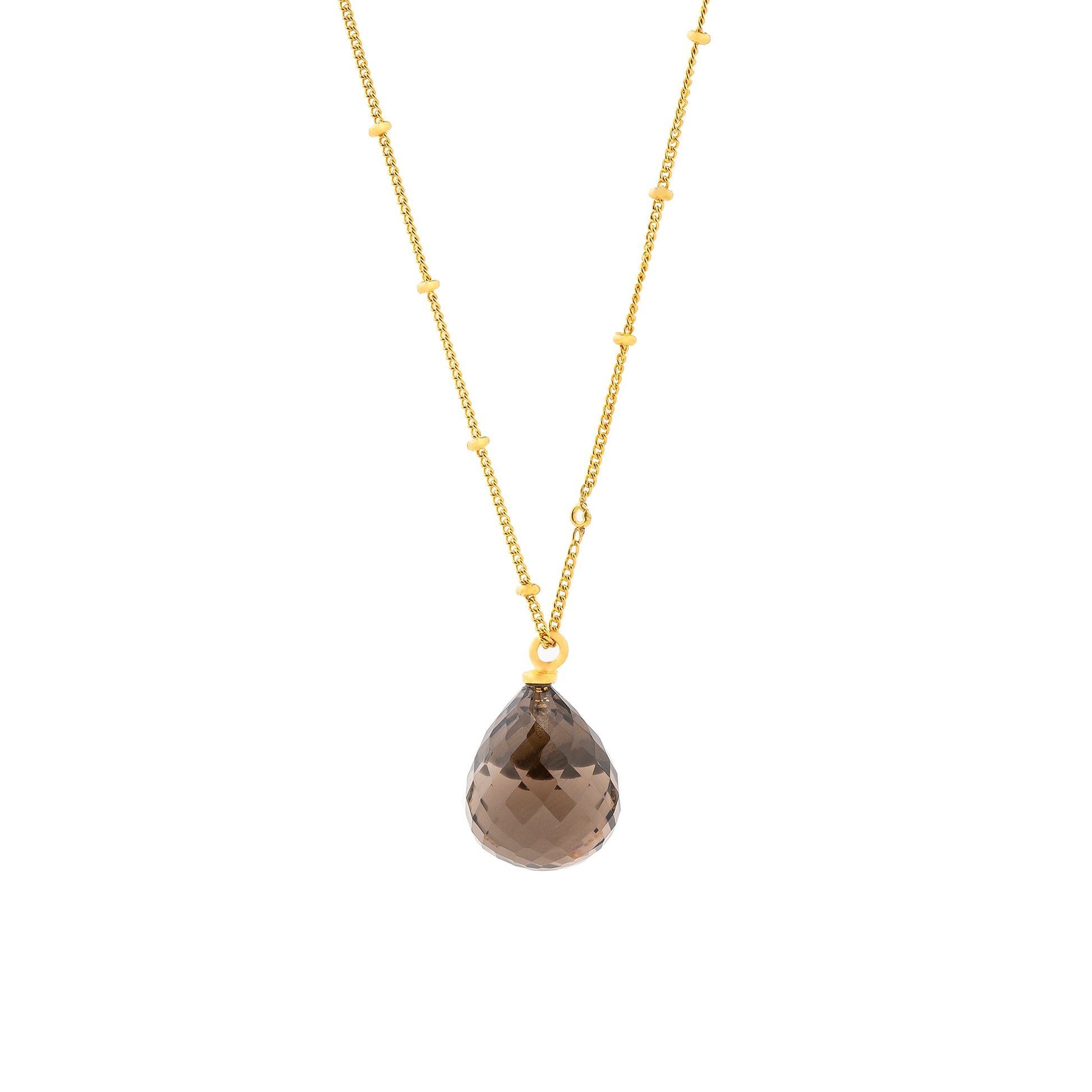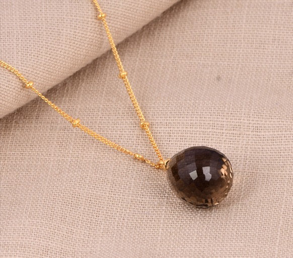 Un colgante único de 18K en Oro Vermeil, con una piedra marrón tallada a mano y un brillo natural que deslumbra a simple vista.